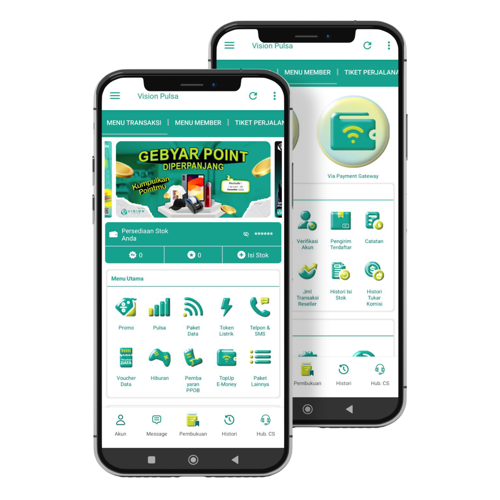 Beragam produk digital dari Vision Pulsa dapat anda gunakan dengan mudah dan gratis melalui aplikasi kami