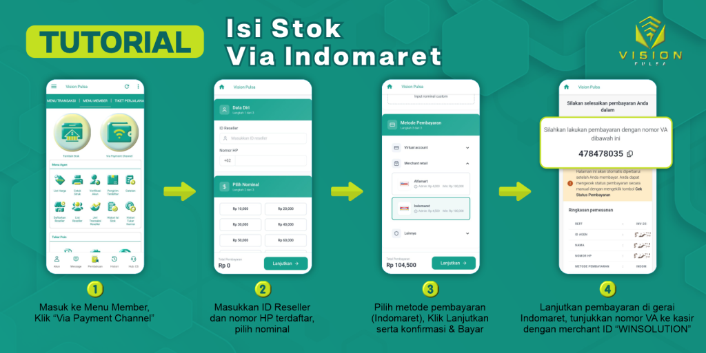 Cara isi stok Vision Pulsa melalui alfamart.
