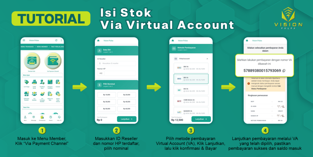 Cara isi stok Vision Pulsa melalui transfer Bank.
